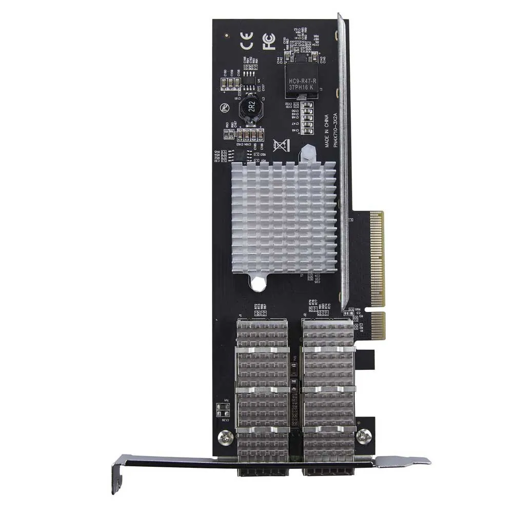 - With its open QSFP+ slots, the network interface card supports QSFP+ transceiver modules and is compatible with multimode and single-mode fiber, providing a scalable networking solution.