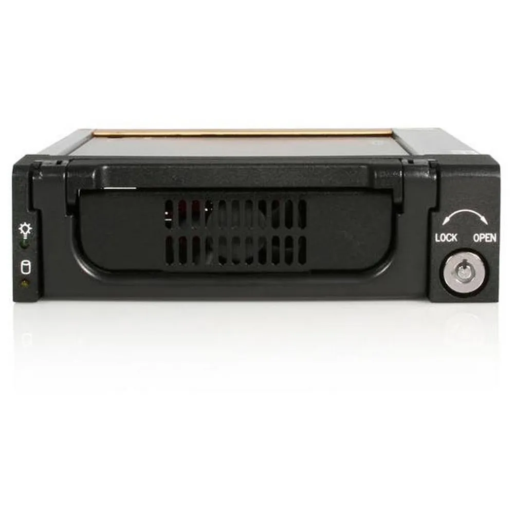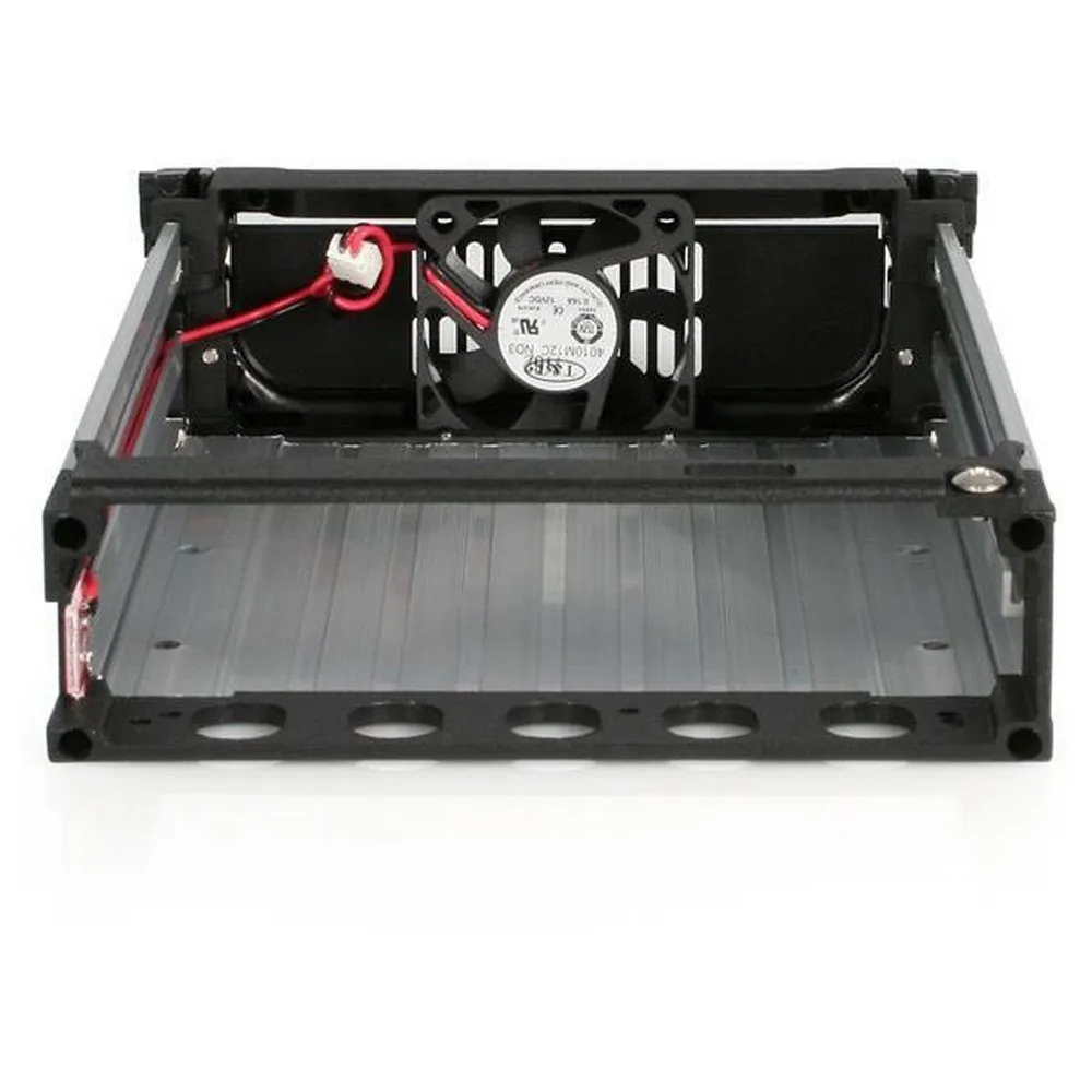 - Simply install the drive bay into a 5.25in bay on the host computer, then mount a 3.5in SATA HDD into the (removable) caddy. Connecting the SATA hard drive to the computer is as easy as inserting the caddy into the drive bay, which can be locked to prevent unauthorized removal of the drive. Features a front panel ball bearing fan, aluminum construction and 25K insertion rating.