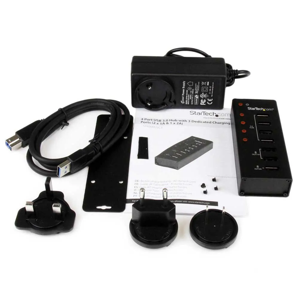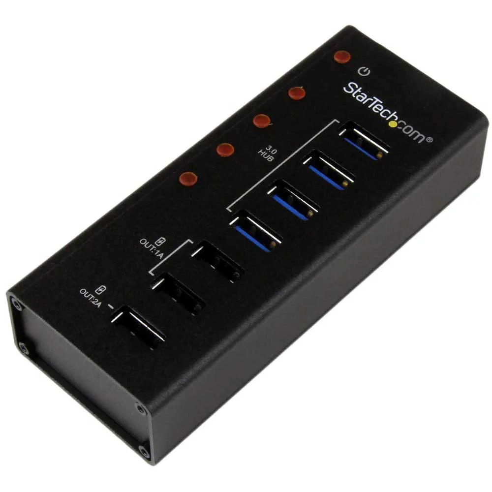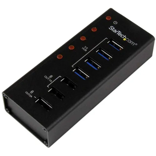 The ST4300U3C3 USB 3.0 Hub enables simultaneous data hub and USB charging functionality by adding three dedicated USB charge ports, as well as four USB 3.0 data ports, for a total of seven ports, all through a single USB 3.0 host connection.