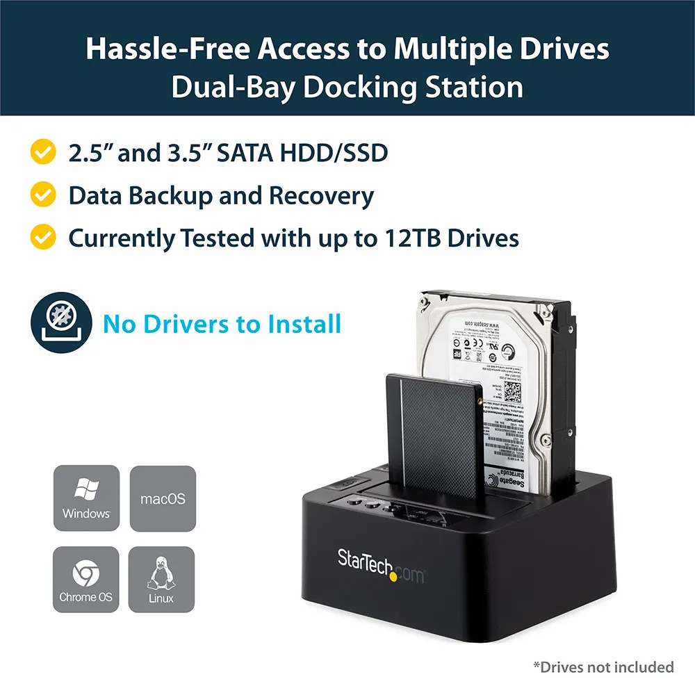 The dock features a top-loading, toaster-style design that makes it easy to insert your drives.