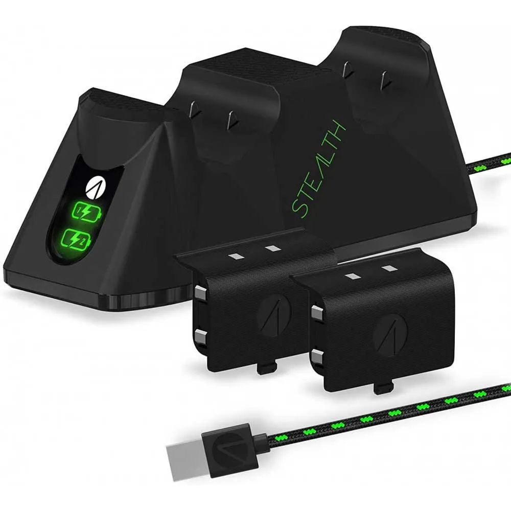 The STEALTH Xbox Controller Charging Station in sleek black is a must-have accessory for any serious Xbox gamer. This charging station allows you to charge up to two Xbox controllers simultaneously, ensuring that you never have to worry about running out of battery power in the middle of a gaming session.
