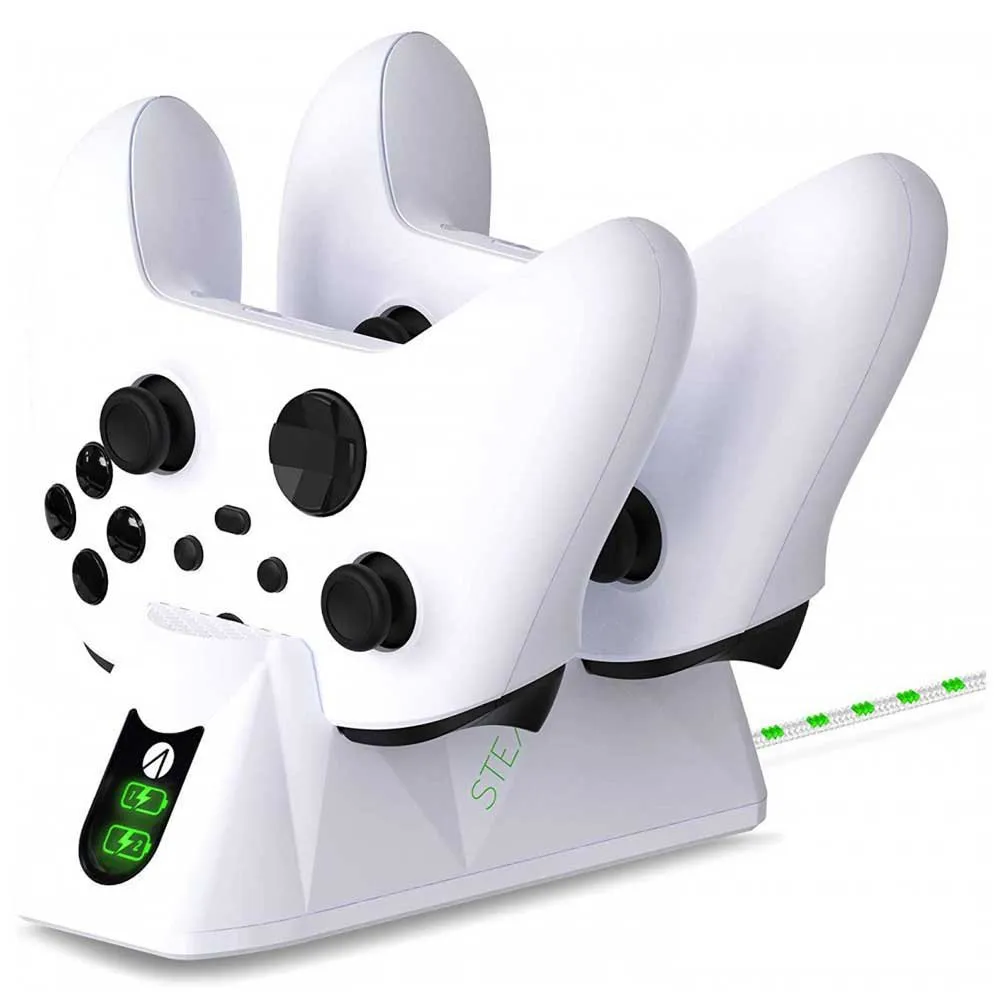 The STEALTH Xbox Controller Charging Station in White is the perfect companion for Xbox gamers who want to keep their controllers charged and ready to go at all times. This sleek and stylish charging station can charge up to two Xbox controllers simultaneously, ensuring that you never have to worry about running out of battery power in the middle of a game.
