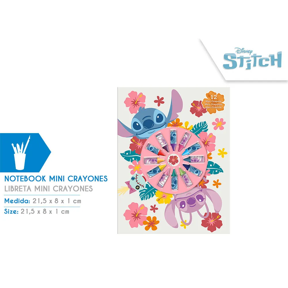 * Included Items: 1 x Stitch Themed Notebook, 12 x Assorted Mini Crayons