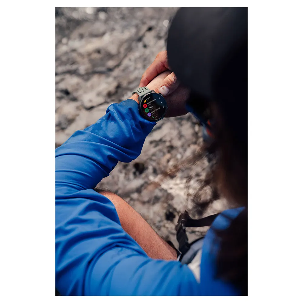 Navigate with absolute confidence using free global offline outdoor maps, accessible directly on the brilliant 1.5´´ LTPO AMOLED display. The dual-band GNSS system connects to up to 32 satellites simultaneously, ensuring pinpoint accuracy even in the most challenging environments. With an extraordinary battery life of up to 65 hours in the most accurate tracking mode and up to 40 days in daily use, you can focus on your adventure without worrying about your charge.