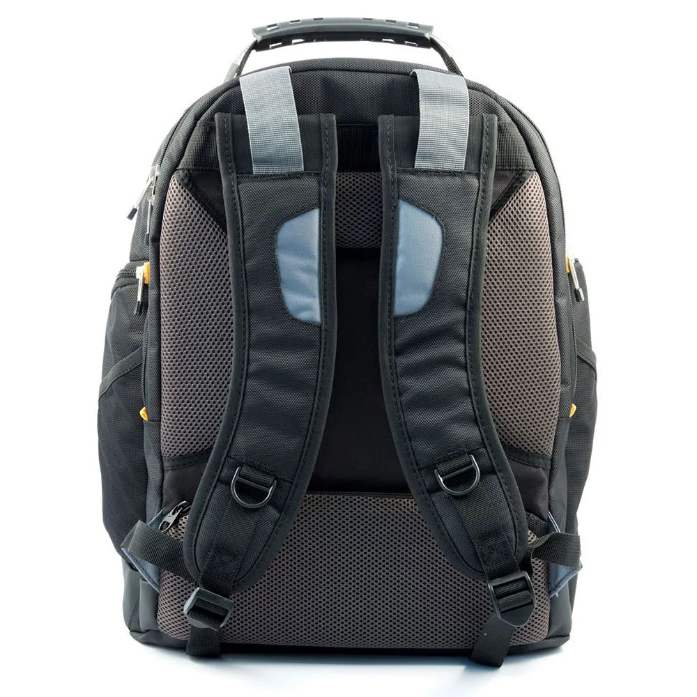 Targus Drifter backpack features a water resistant base, heavy zipper pulls and a reinforced moulded grab handle. Heavily padded shoulder straps provide carrying comfort. Thick padding on the back panel features a large hidden zippered compartment which is strategically placed to provide lumbar support for your back.
