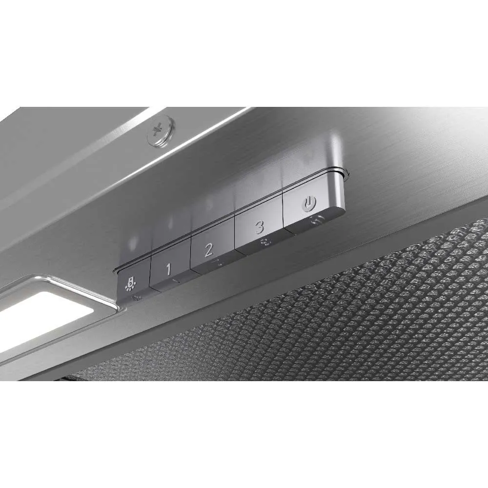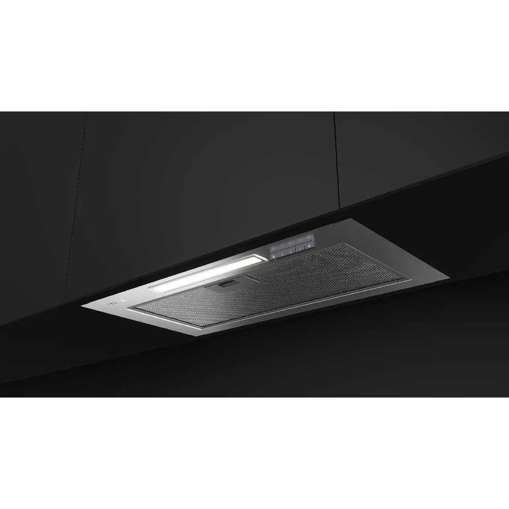 Achieve a clean, minimalist kitchen with the TEKA GFI 63030 KOS Inox hood. This 60 cm built-in unit integrates flawlessly under your cabinets for a virtually invisible finish. Its compact, space-efficient design frees up valuable cabinet space for your kitchen staples. Engineered for convenience, installation is quick and simple, with millimetre-perfect adjustments for a seamless fit. Enjoy powerful extraction with 3 speeds (up to 316 m³/h), bright LED lighting, and intuitive push-button controls, all designed to enhance your cooking experience while maintaining a sleek aesthetic