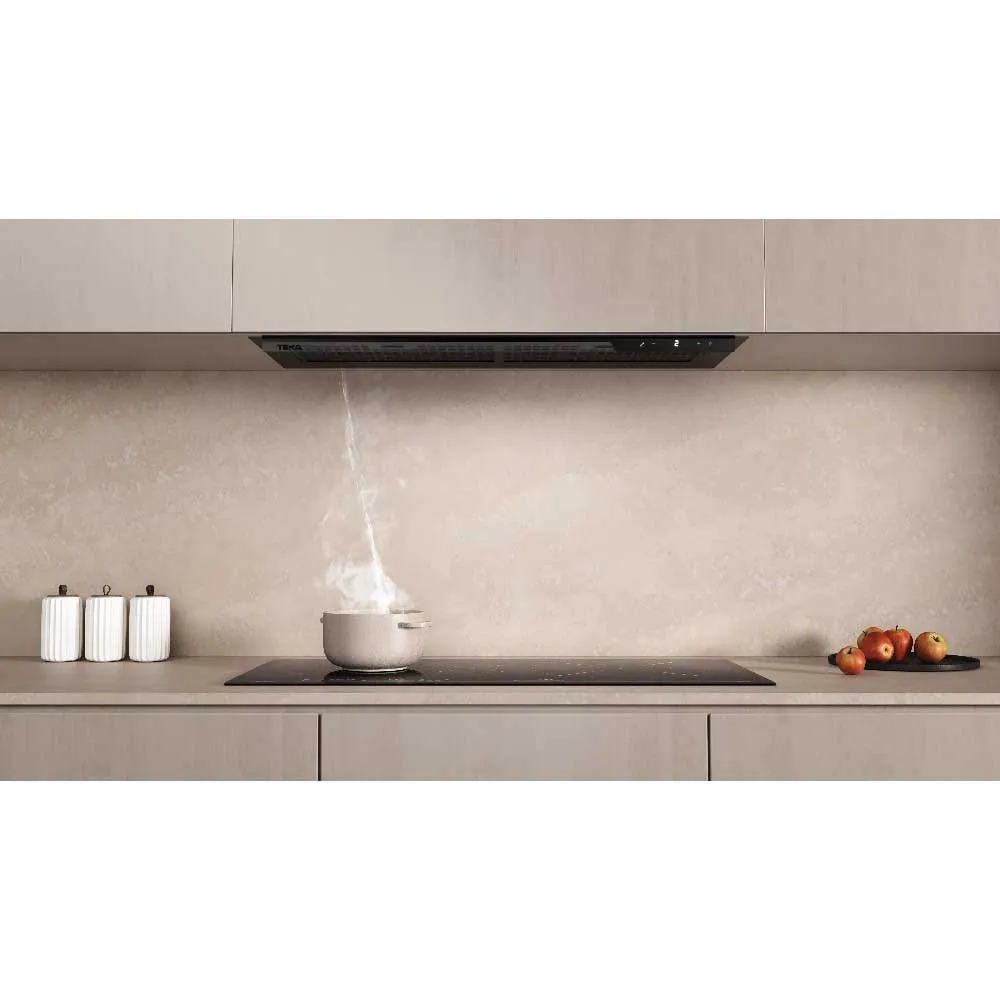 Elevate your kitchen with the TEKA GFI 97350 EOS, a built-in hood designed for a seamless, virtually invisible look. It integrates flawlessly into your cabinetry, preserving a clean, streamlined aesthetic while its compact body maximizes storage space. Experience powerful and efficient extraction with the A+ rated EcoPower motor, clearing smoke and odours with up to 766 m3/h airflow. Illuminate your cooking area with the bright LED light bar, and easily manage settings via intuitive electronic touch controls offering 3 speeds plus an intensive boost
