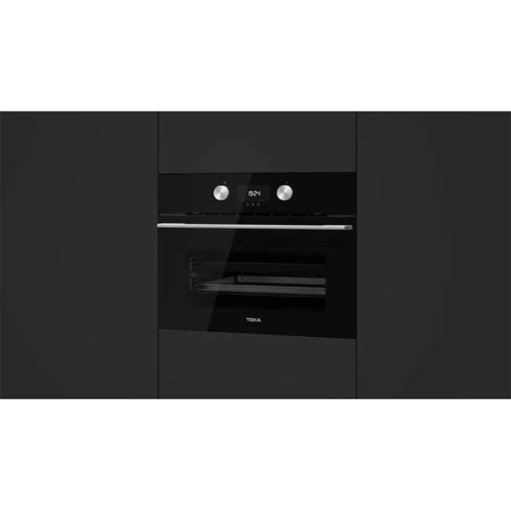 Achieve flawless culinary results with the TEKA HLC 8400 compact oven. Its SurroundTemp technology guarantees perfectly even cooking on every level, while 9 versatile functions, including a pizza setting, let you master any recipe. Cleaning is a breeze with the automatic HydroClean® PRO system. A cool-touch, triple-glazed door ensures safety and is removable for total hygiene. Navigate effortlessly with the Touch Control panel and telescopic guides. With an A+ energy rating and sustainable manufacturing, this oven combines performance with peace of mind