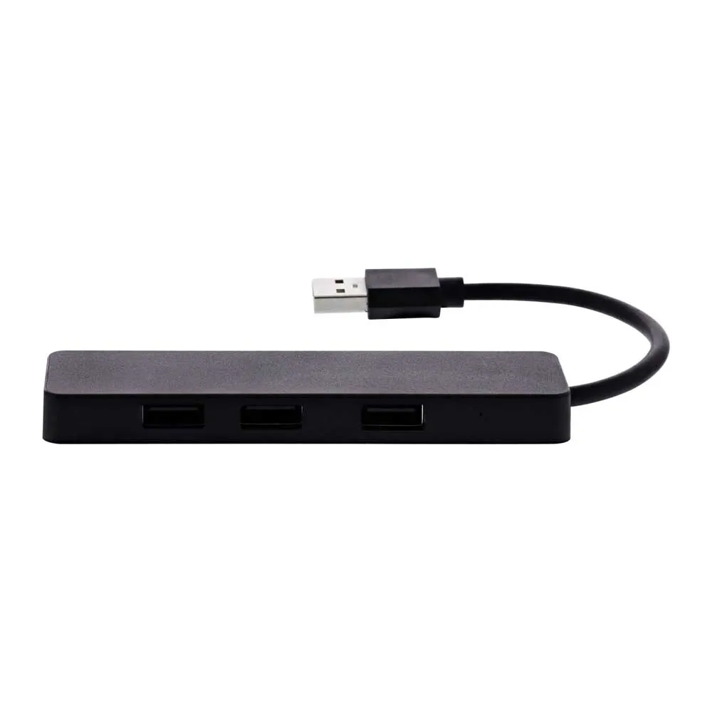 Self-powered hub with integrated USB cable. Transfer speed up to 480 Mbps.
