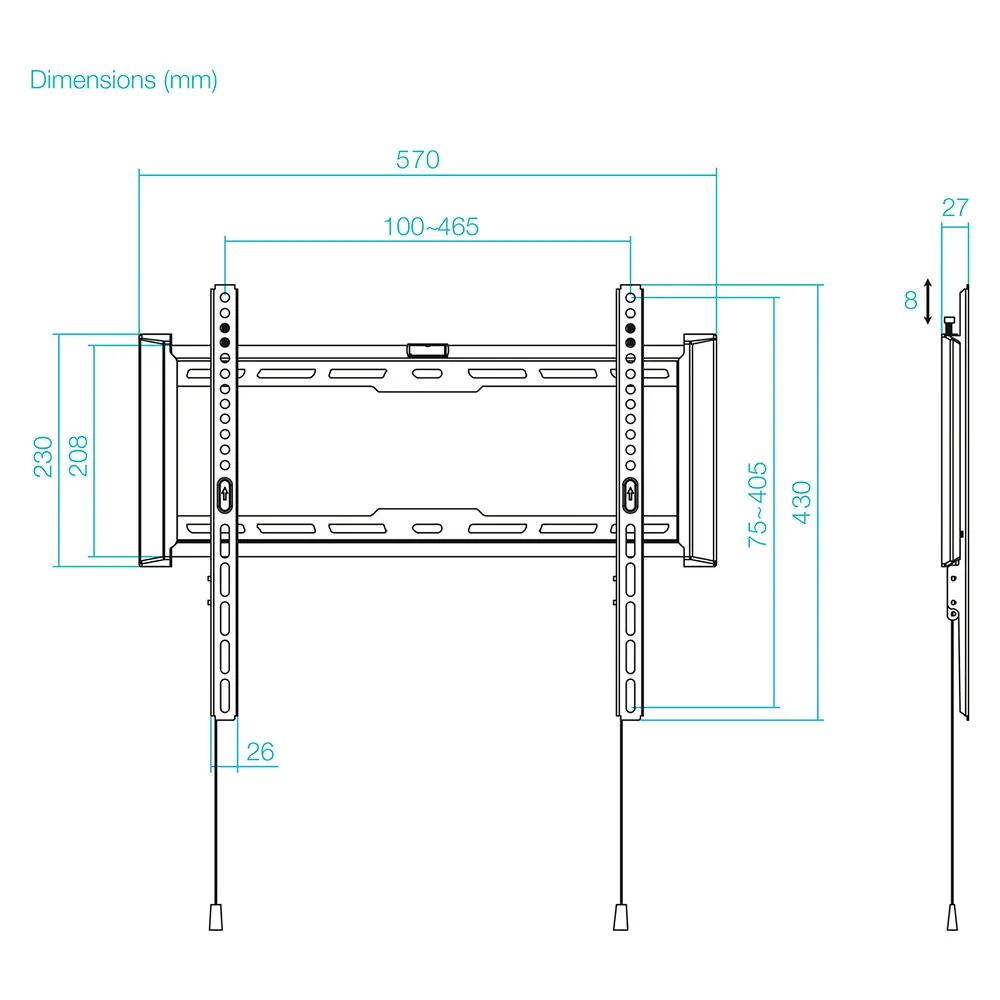 Maximum weight capacity:75 kg, Minimum screen size:81.3 cm (32), Maximum screen size:177.8 cm (70), Minimum VESA mount:200 x 200 mm, Maximum VESA mount:400 x 400 mm.
