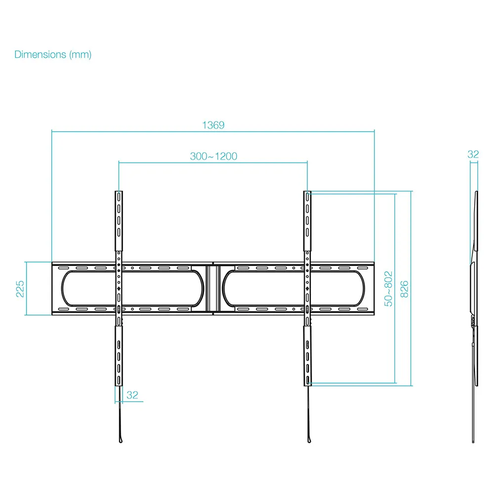 Maximum weight capacity:125 kg, Minimum screen size:94 cm (37), Maximum screen size:3.56 m (140), Minimum VESA mount:300 x 200 mm, Maximum VESA mount:1200 x 800 mm.