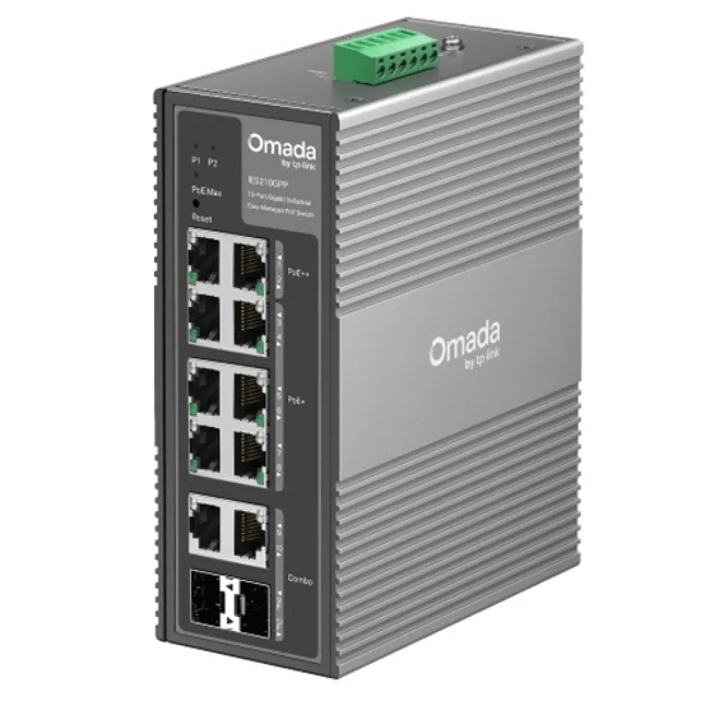 TP-Link Omada 10-Port Gigabit Industrial Easy Managed Switch with 6-Port PoE+ and 2-Port PoE++.