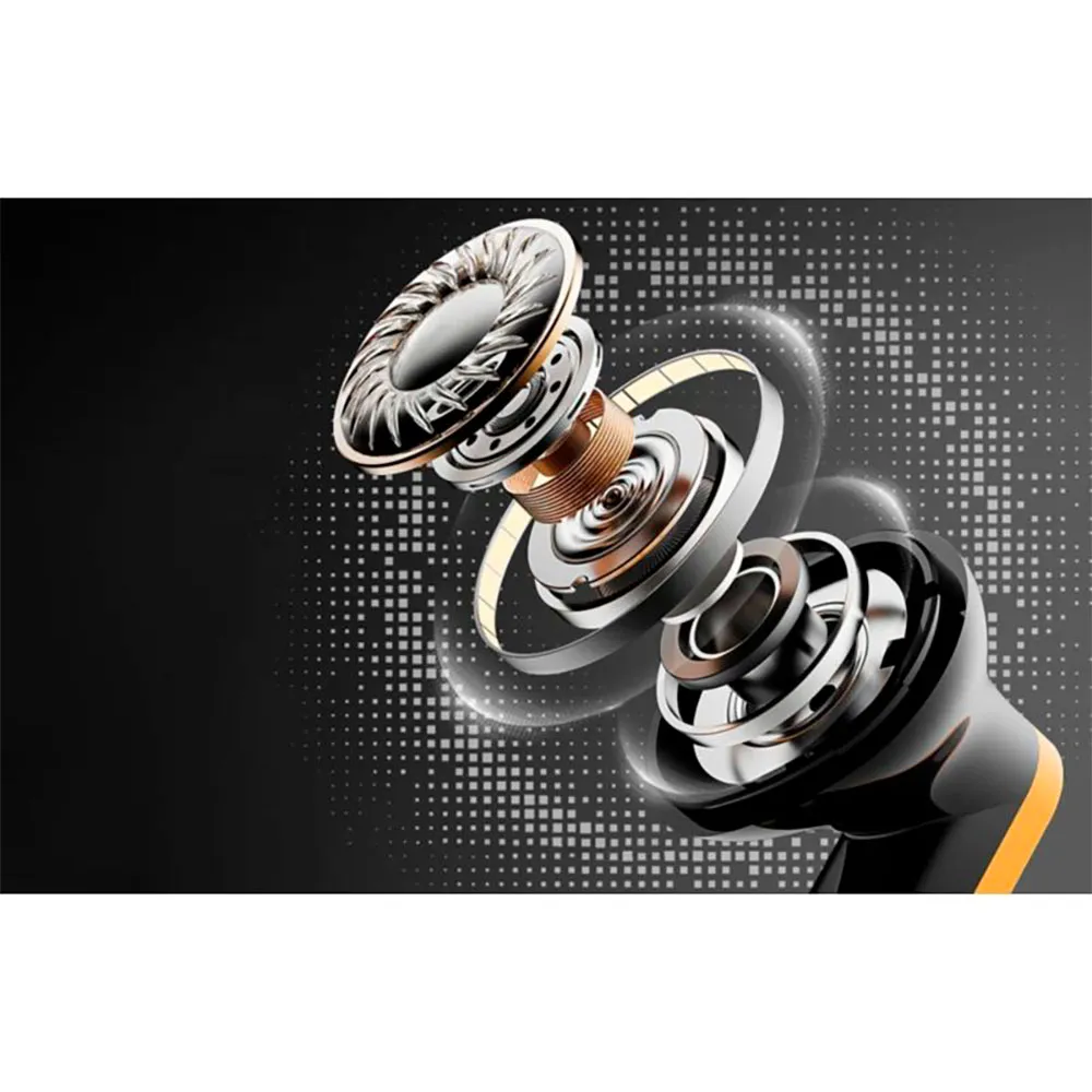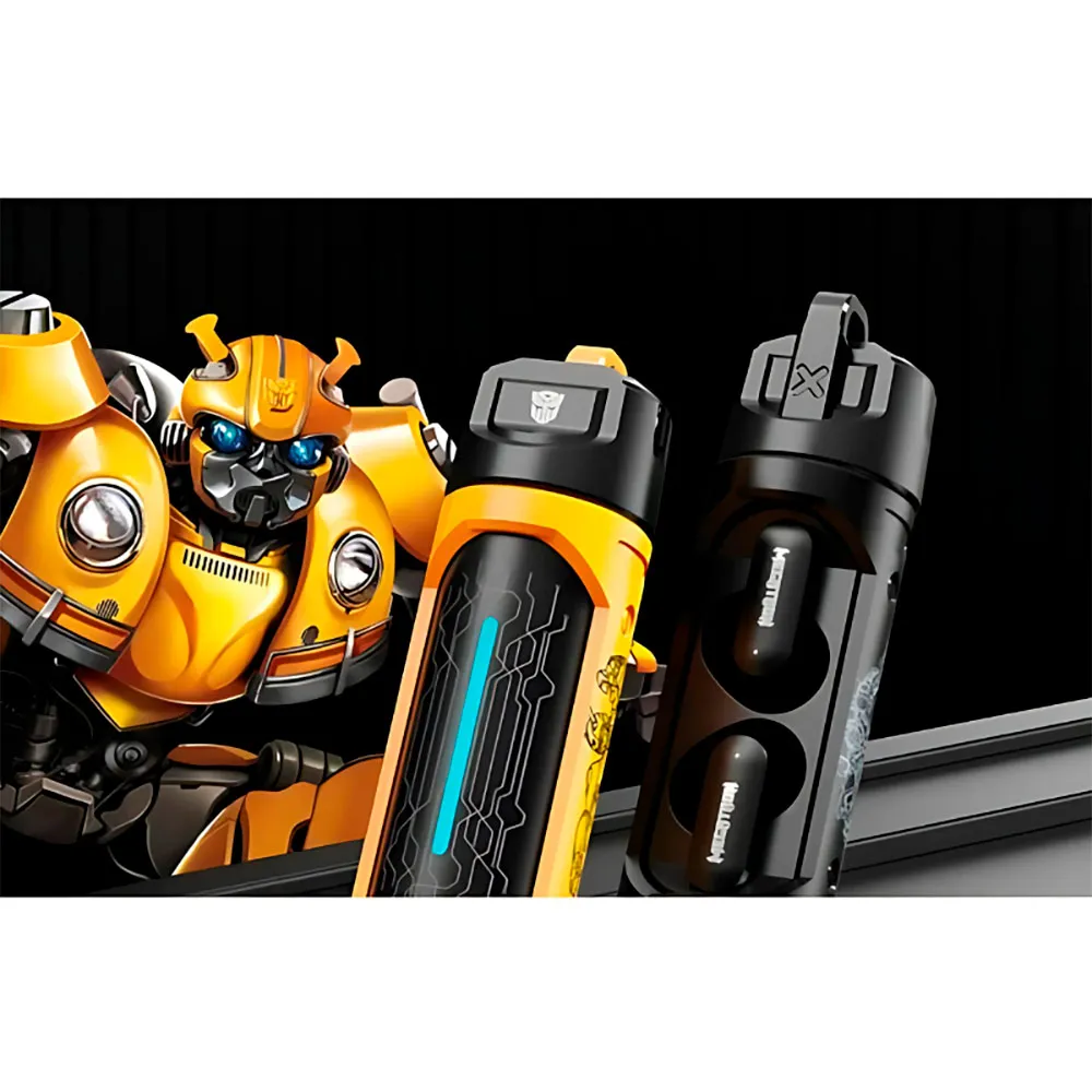 TWS Transformers TF-T11, headphones with Bluetooth 5.4 and a rotating case that emits a mechanical sound, in yellow.