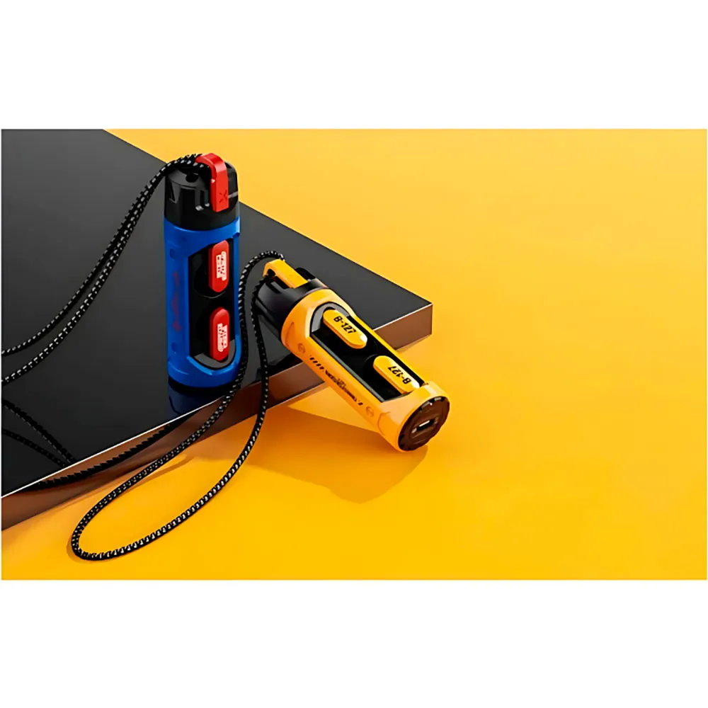 In addition, it includes a metal cord that is anchored to the case, allowing them to be worn hanging around the neck in a practical and stylish way.