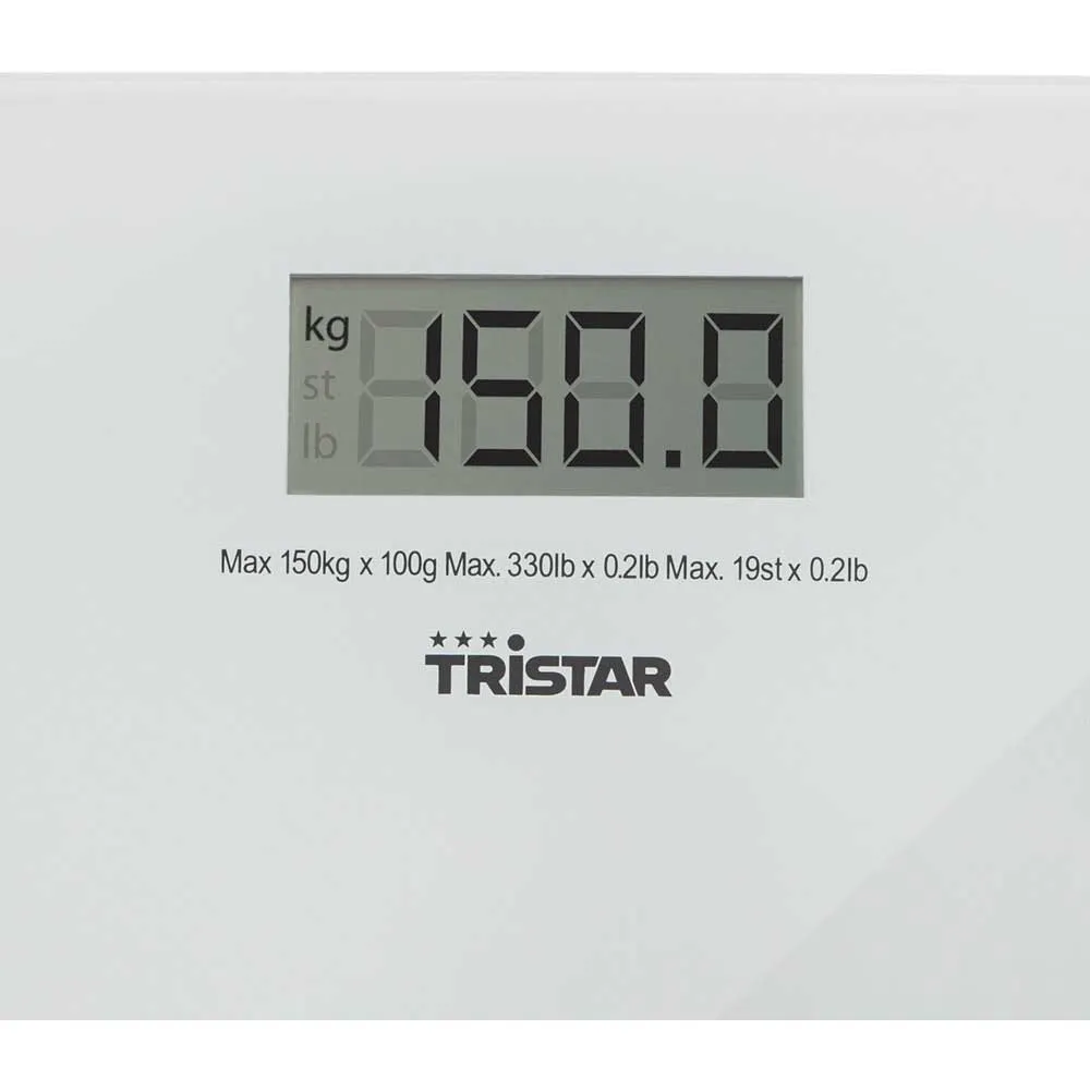 - The Tristar personal scale has step-on technology, so the scale turns on as soon as you step on it. It can measure your weight with 0.1 kg accuracy. The scale can measure your weight up to 150 kg. You can also choose the unit you want to measure in: kg or lb.