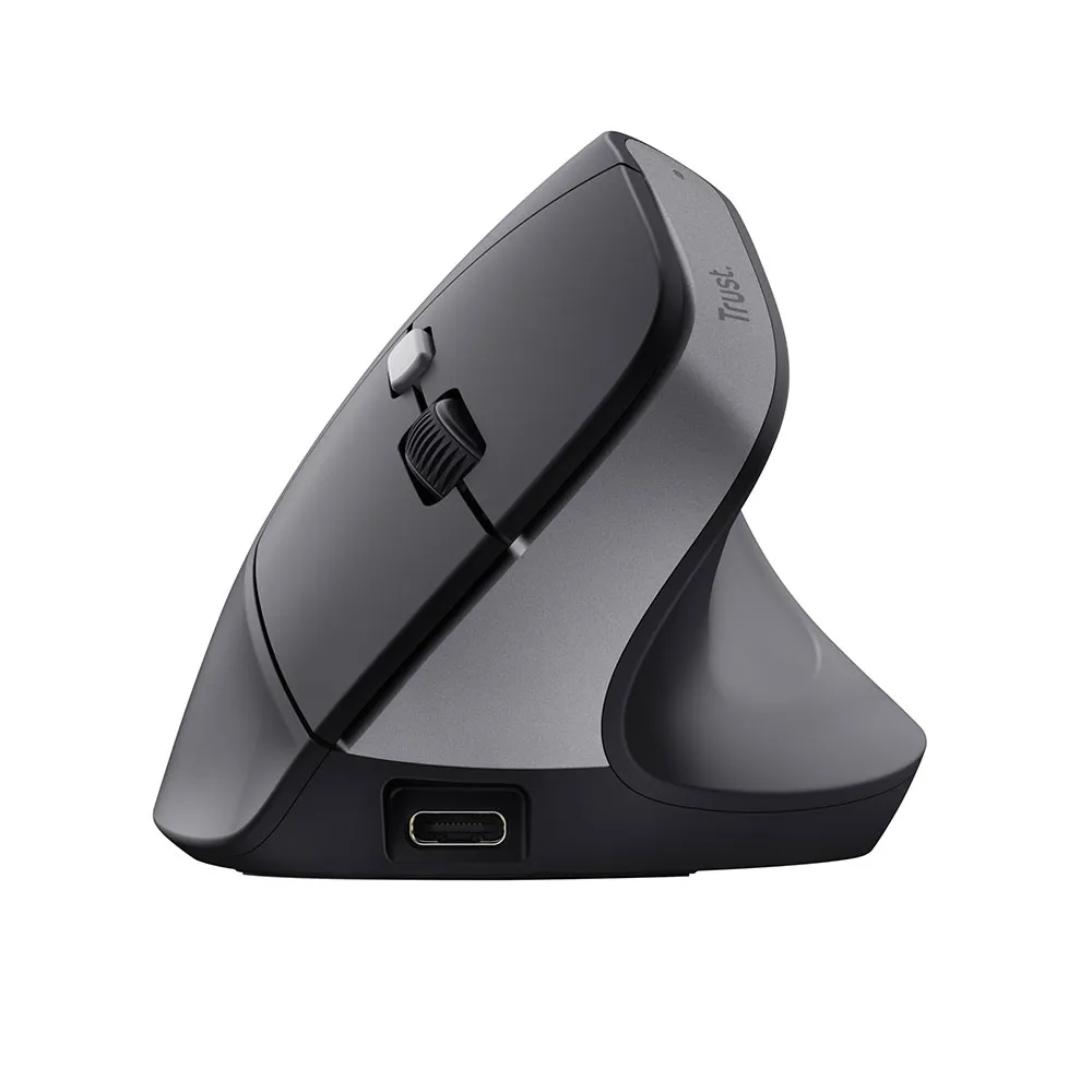 Ergonomic wireless mouse with optimal vertical angle for reduced wrist strain.