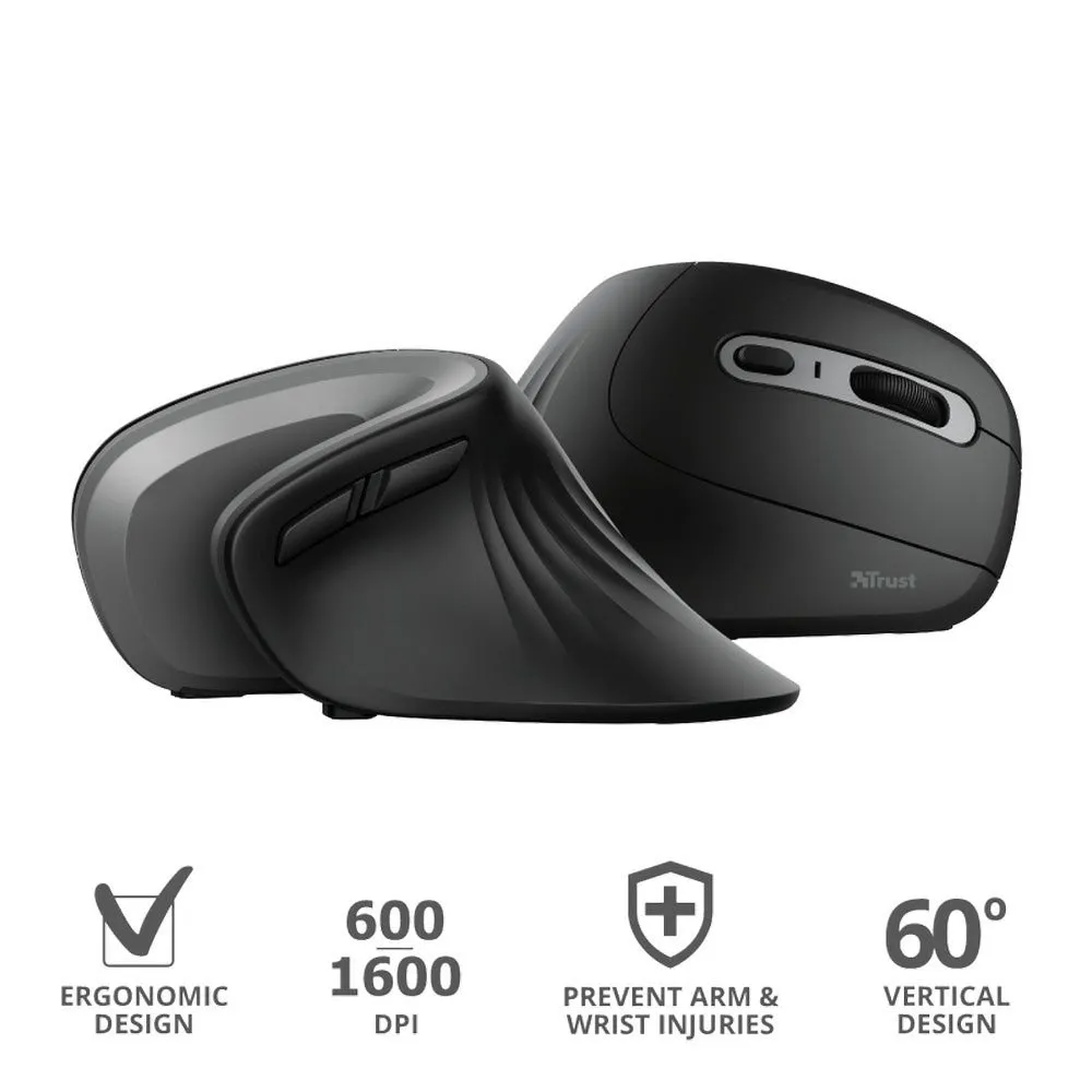 - Make the most of the hours you spend working on your computer with a mouse. The Trust Verro Ergonomic Wireless Mouse is the vertical solution to wrist and arm strain and pain. With its unique shape and various functional features, the Verro is the smart choice when you need to operate a mouse for long hours.