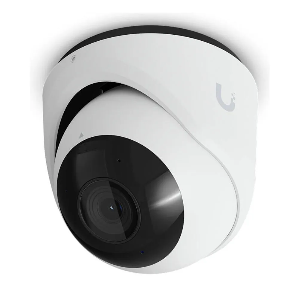 The Ubiquiti G6 turret is a tamper-resistant, all-weather 4K PoE camera with a 1/1.8" 8MP image sensor, multi-TOPS AI engine, and 3-axis manual adjustment for flexible installation.