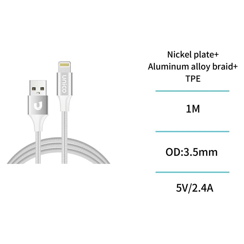 UNICO AL Braided Lightning to USB-A Cable | 3.4A Fast Charging & Data Sync