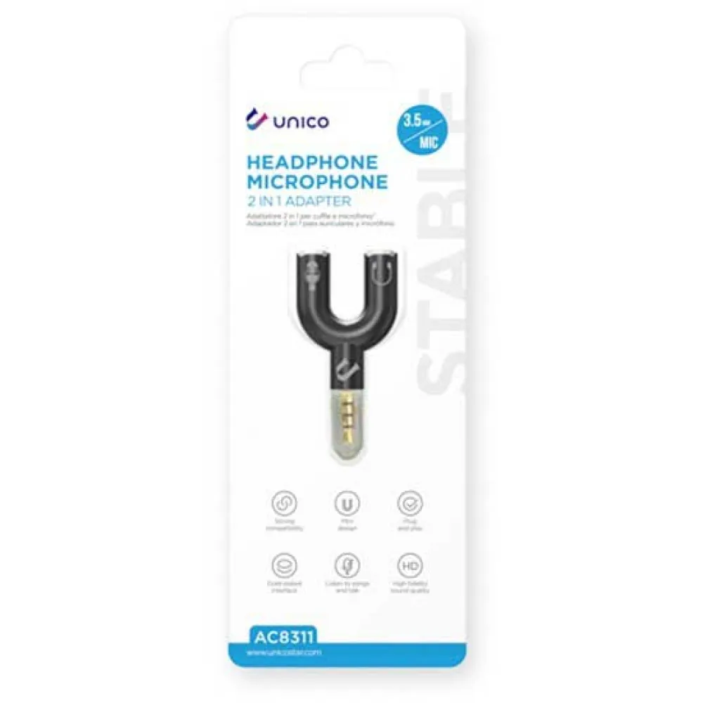 The UNICO adapter is the perfect solution for connecting two sets of headphones or two portable speakers to one audio source, such as a smartphone, tablet, laptop, or MP3 player. Its simple plug-and-play design requires no software or complicated setup. Just plug the male 3.5mm jack into your device and connect your headphones to the two female 3.5mm ports. The robust construction ensures a secure and stable connection, delivering crisp, clear, and uninterrupted stereo sound to both outputs simultaneously. Its compact and lightweight form factor makes it an indispensable travel companion, easily fitting into any pocket, bag, or tech kit.