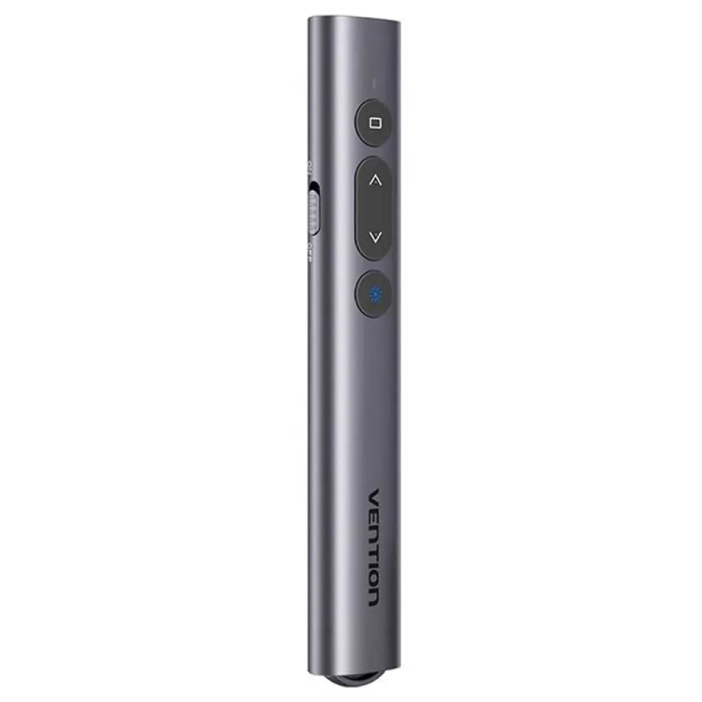 - The Vention pointer is equipped with a red laser with a wavelength of 650 nm, which works at a distance of up to 100 meters. Remote control of the presentation is possible within a radius of up to 50 meters, and 360° technology allows you to operate without having to aim at a computer. This allows you to move freely around the room while keeping your presentation running smoothly.