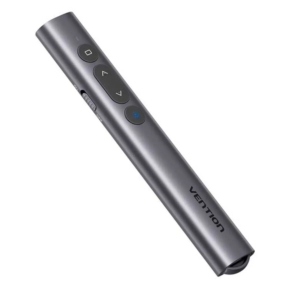 The Vention laser pointer is a precise tool for handling presentations and other office materials. The device features a laser with a range of up to 100 meters, a USB-A/USB-C type receiver and buttons for convenient operation. It works without installing drivers, supports Windows, macOS, Linux, Android and iOS, and works with popular programs like PowerPoint, Word and Excel.