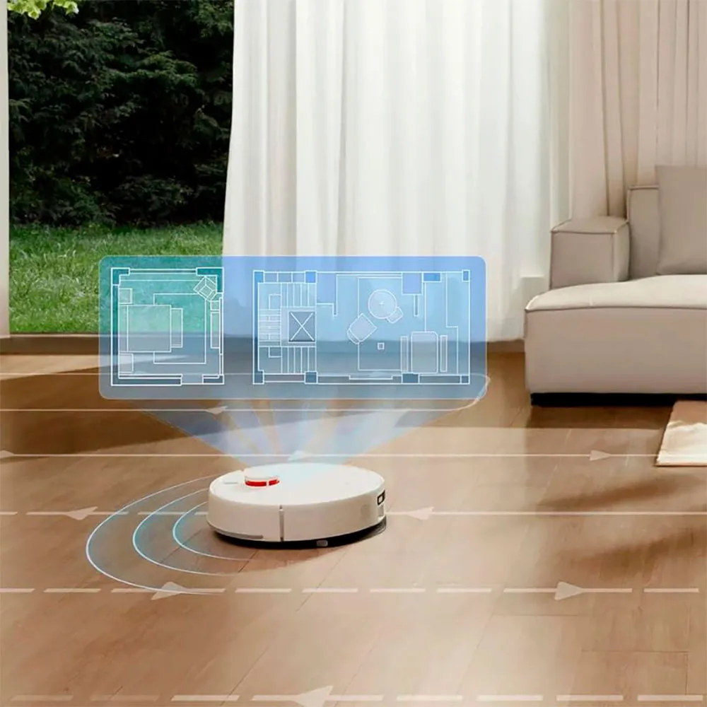 The LDS sensor generates accurate plans and supports multi-floor, prohibited zones, and spot cleaning from the Xiaomi Home app.