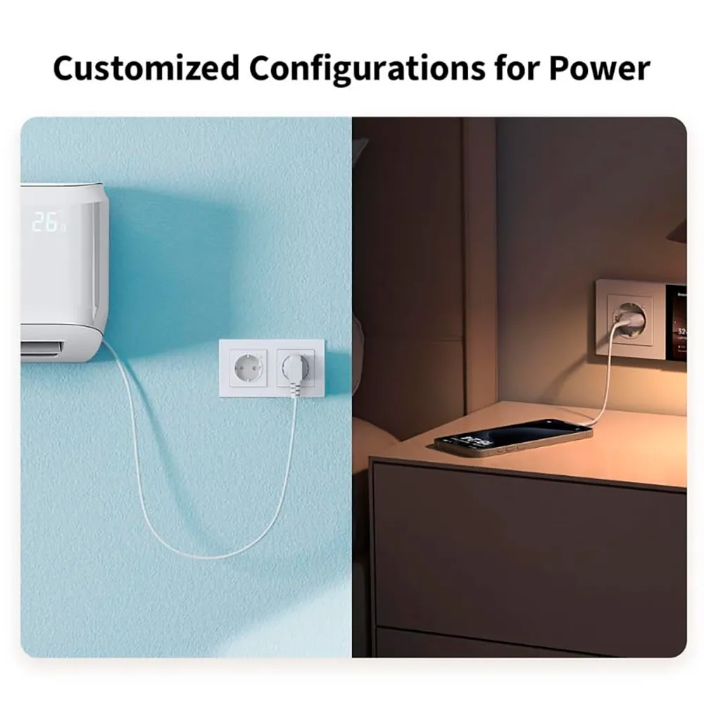 - The smart outlet automatically deactivates the power supply when exceeding preset thresholds (configurable from 100 to 3840 W) or in case of overheating, which guarantees the protection of the device and the home against electrical accidents.