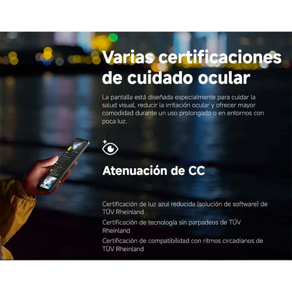 Brightness of 850 nits (HBM), TÜV Low Blue Light, flicker-free technology and reading mode to improve visual comfort.