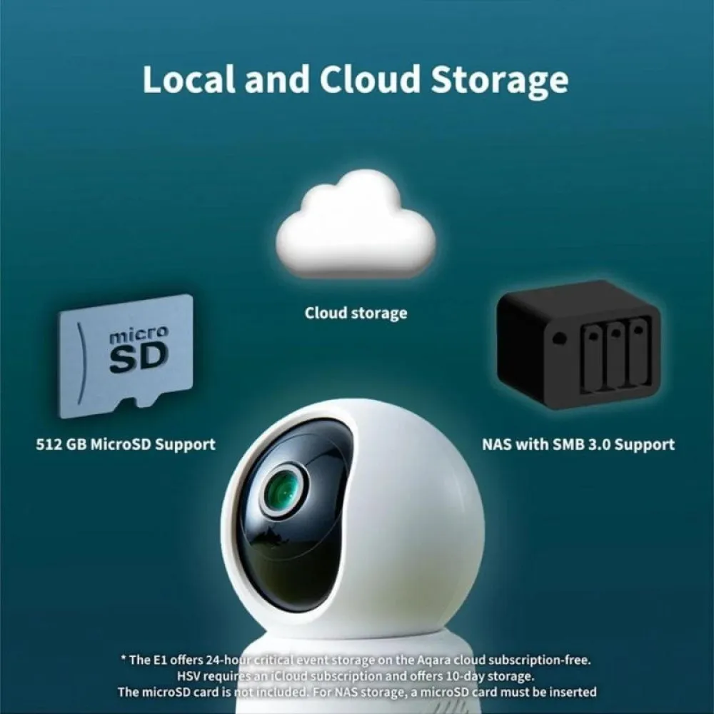 Secure your home with the Aqara E1 indoor camera. Experience stunning 2K resolution and clear night vision, all captured with a full 360° rotation for complete room coverage. Its intelligent technology detects human figures and sounds, sending you precise alerts. Enjoy a stable, secure connection with advanced WiFi 6 and WPA3 security. Communicate with family or pets using two-way audio, or use voice commands with Google Home and Alexa. Store footage flexibly on a 512 GB SD card or in the cloud. Smart, simple, and secure surveillance