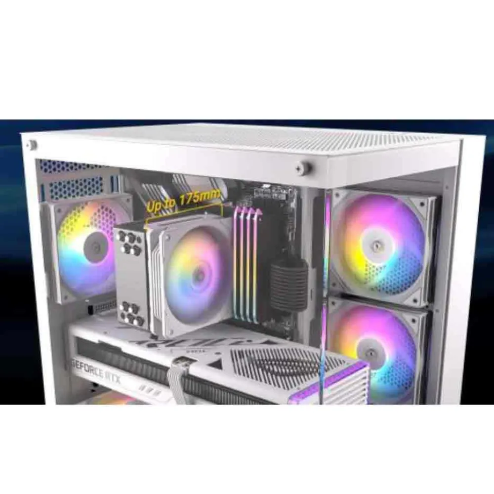 La CX800 es una obra maestra de la ingeniería térmica, construida alrededor de un innovador diseño de doble cámara. Este diseño inteligente aísla los principales componentes generadores de calor, como la CPU y la GPU, de la fuente de alimentación y las unidades de almacenamiento. El resultado es un entorno operativo significativamente más fresco y estable, lo que permite que tu sistema alcance su máximo potencial. Este chasis grande proporciona un vasto lienzo para configuraciones de refrigeración extremas, ofreciendo a los constructores una flexibilidad increíble.