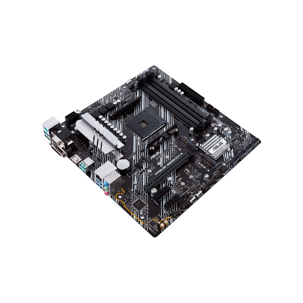 Potencia tu PC compacta con la placa base ASUS Prime B550M-A/CSM. Diseñada para CPUs AMD Ryzen de 3ª generación, esta placa micro ATX ofrece un rendimiento robusto. Aprovecha las velocidades de próxima generación con una ranura PCIe 4.0 y soporte M.2 para almacenamiento ultrarrápido. Soporta hasta 128 GB de RAM DDR4 de alta velocidad y ofrece conectividad integral, incluyendo puertos USB 3.2 Gen 2, múltiples salidas de pantalla (HDMI, DVI-D, VGA) y Ethernet Gigabit estable. Es una base versátil y fiable para tu sistema AMD
