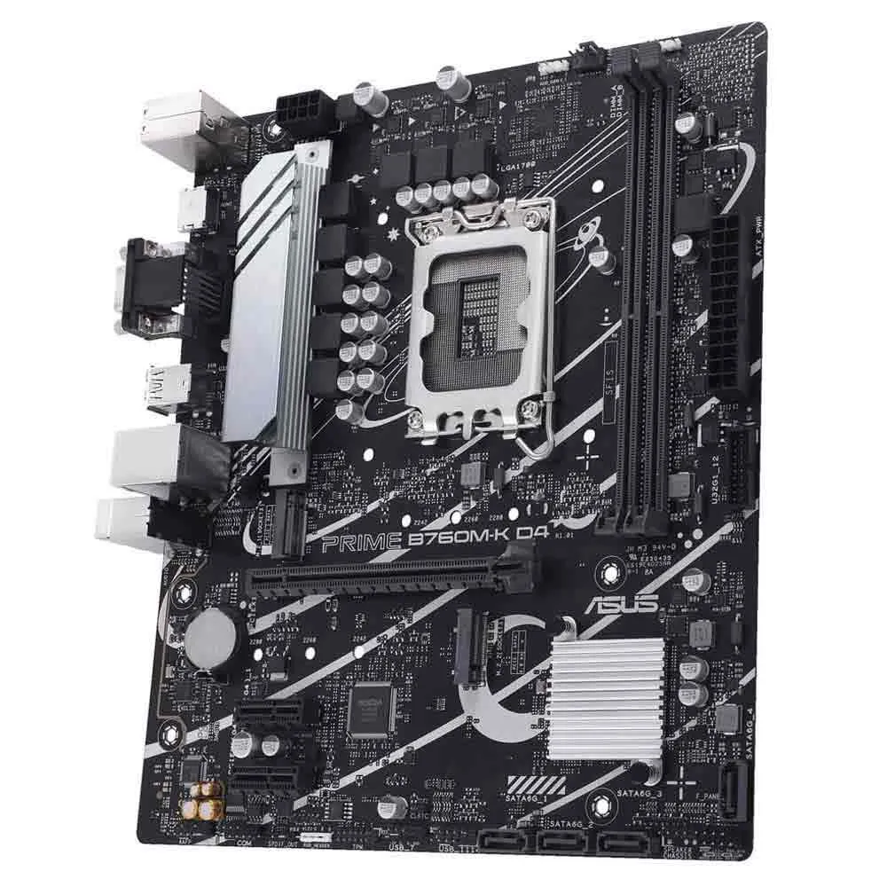 La Asus PRIME B760M-K D4 es una placa base diseñada con múltiples disipadores de calor integrados y una variedad de encabezados de ventiladores híbridos para garantizar que su equipo se mantenga fresco y estable bajo cargas de trabajo intensas.