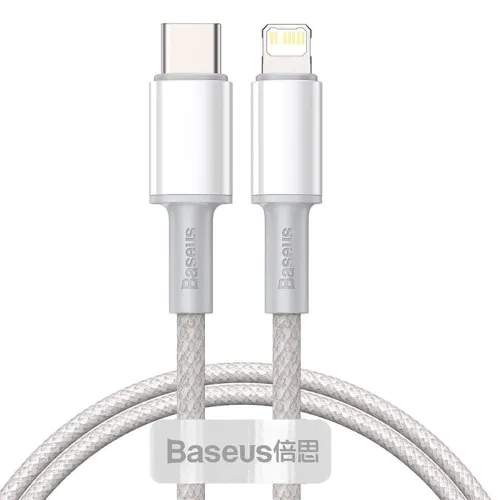 Cable trenzado blanco de alta densidad Baseus que admite carga rápida PD a 20 W para iPhone - USB tipo C a Lightning.