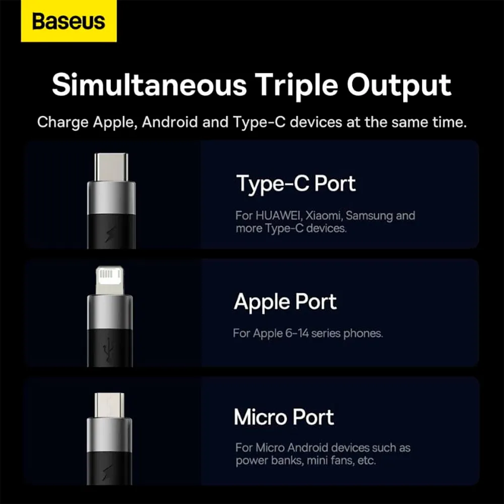 Tecnología Baseus Cable USB-C/micro/Lightning