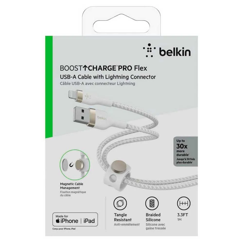 Fuerza y flexibilidad avanzadas Nuestros cables de silicona trenzada BOOST↑CHARGE PRO Flex agregan durabilidad y flexibilidad a su carga. Son hasta 30 veces más duraderos* que los cables comunes, lo que le brinda una solución de carga duradera que no se deshilacha ni se enreda. Incluye un sistema de gestión de cables magnéticos para mayor comodidad. Disponible en longitudes de 1M, 2M y 3M y en cuatro colores.