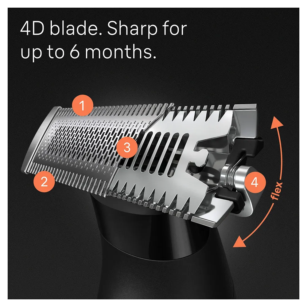 En el corazón de la XT5200 se encuentra la revolucionaria tecnología 4D-Blade de Braun. Esta cuchilla única cuenta con dos zonas de afeitado centrales y dos recortadoras laterales, que trabajan juntas para realizar 450 movimientos por segundo. Esta potente acción corta el vello increíblemente cerca de la piel para un acabado suave, manteniéndose a la vez delicada y cómoda. La duradera 4D-Blade está diseñada para durar, manteniéndose afilada hasta por 6 meses de uso, asegurando un rendimiento constante día tras día.