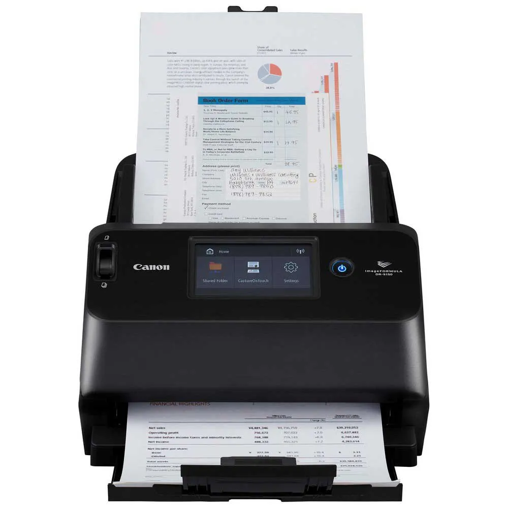 Desbloquee un escaneo rápido y fiable con el Canon DR-S150. Ofreciendo conectividad flexible LAN, WiFi y USB, se adapta perfectamente a cualquier flujo de trabajo. Escanee a una velocidad de 45 ppm/90 ipm con una excelente precisión de color. La gran pantalla táctil a color de 4.3” proporciona un control intuitivo y un funcionamiento con un solo toque. Su ADF de 60 hojas y sus rodillos de alta resistencia alimentan de forma fiable una amplia gama de documentos, incluidos pasaportes y tarjetas de identificación. Aumente la eficiencia con procesamiento inteligente, OCR y gestión de usuarios segura y centralizada. ENCHUFE UE