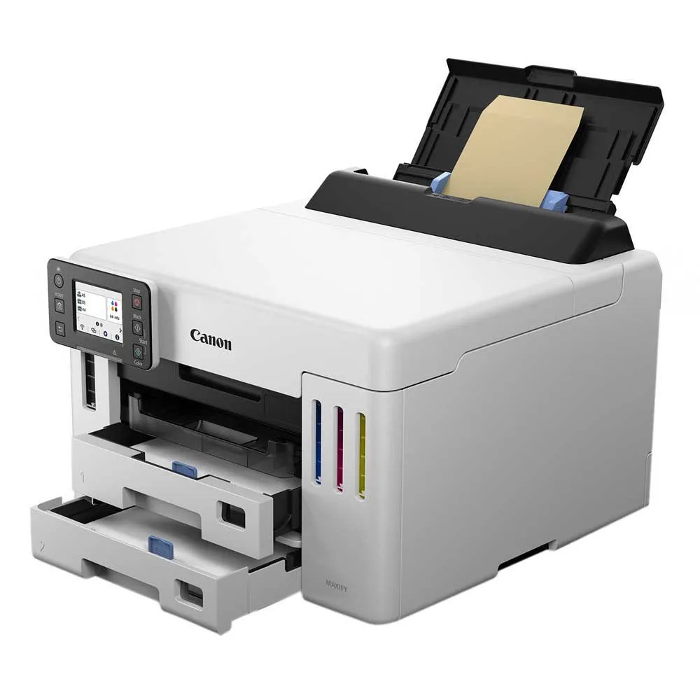 En cuanto a su diseño y estética, la MAXIFY GX5550 presenta un acabado elegante y moderno en gris claro, lo que la convierte en una adición elegante a cualquier espacio de trabajo.