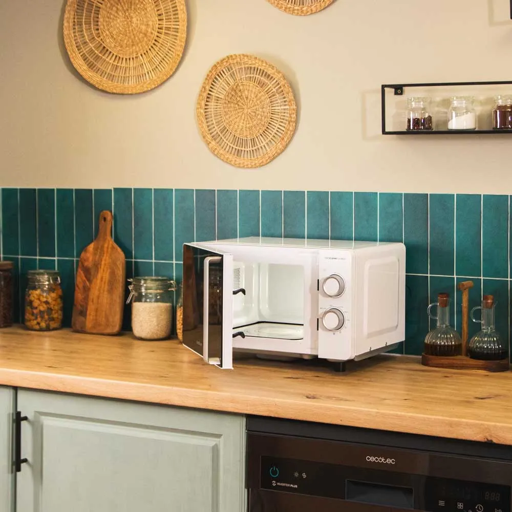 Microondas mecánico flatbed de 20L para preparar tus recetas favoritas con total comodidad.