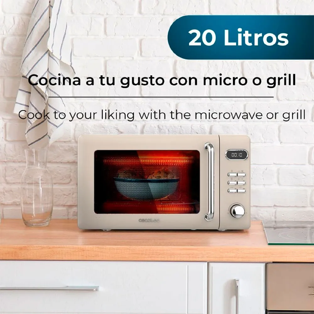 Enchufe de la UE. El microondas CECOTEC Proclean 5110 Retro en color beige es un electrodoméstico elegante y funcional que añadirá un toque de encanto vintage a cualquier cocina.