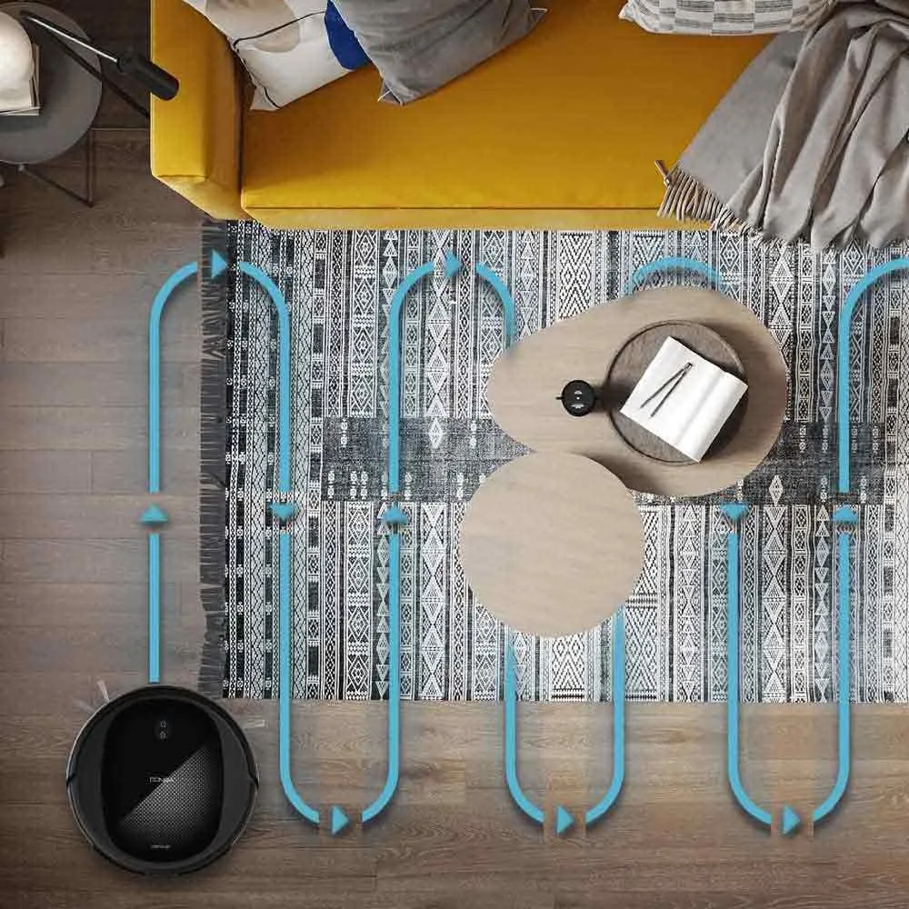 Navegación giroscópica para una limpieza ordenada y eficiente de todas las habitaciones.