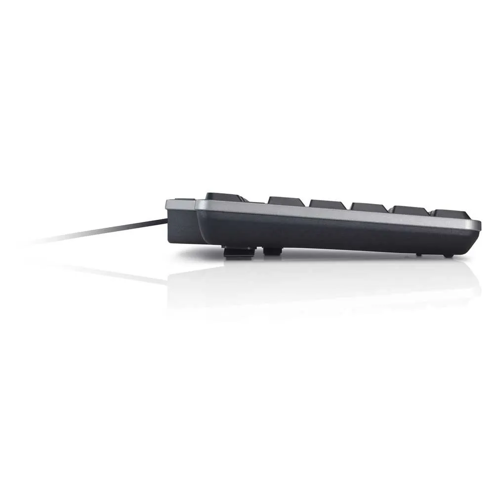 - El teclado incluye un reposamanos para mayor comodidad durante el uso diario. Ideal para entornos de oficina, es duradero, resistente a derrames y silencioso.