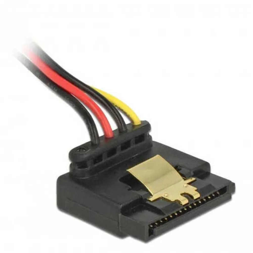 Este cable de Delock se utiliza para alimentar un dispositivo con un conector de alimentación SATA de 15 pines a través de un conector de alimentación de disquete de 4 pines en la placa base. El clip metálico en el enchufe SATA garantiza que el cable encaje de forma fiable en su lugar.