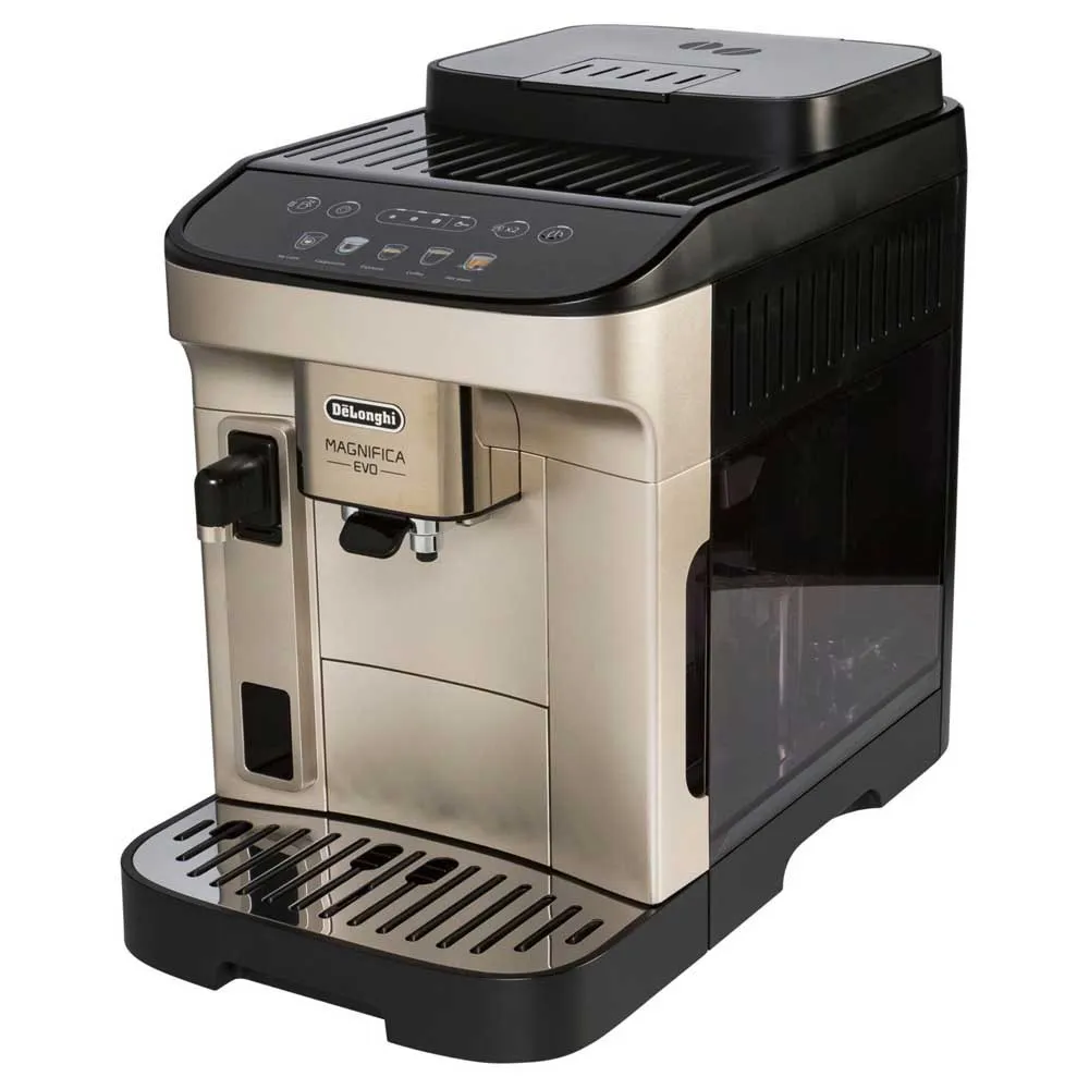 La Magnifica Evo encarna la experiencia de De´Longhi con su avanzada tecnología, bebidas auténticas y un elegante diseño en plata y negro.