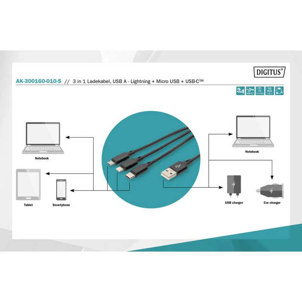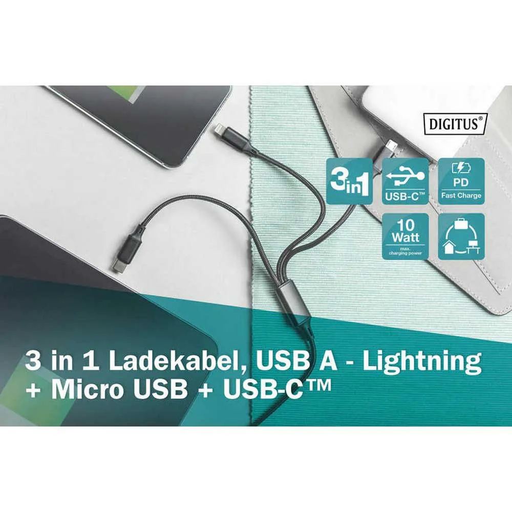 Digitus Cable USB-C USB-A a Lightning/Micro USB/ 1 m