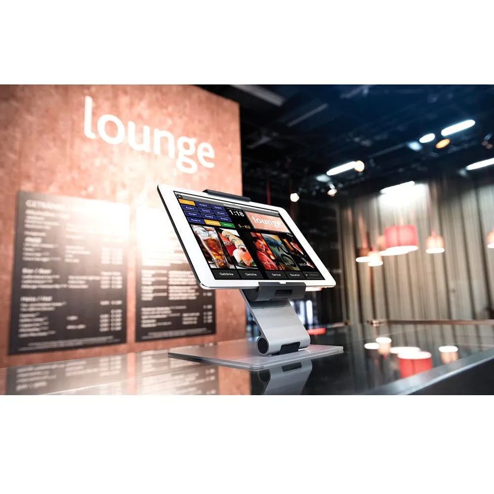 Gestión de cables: la abertura en el soporte sirve como salida del cable de carga para la tableta