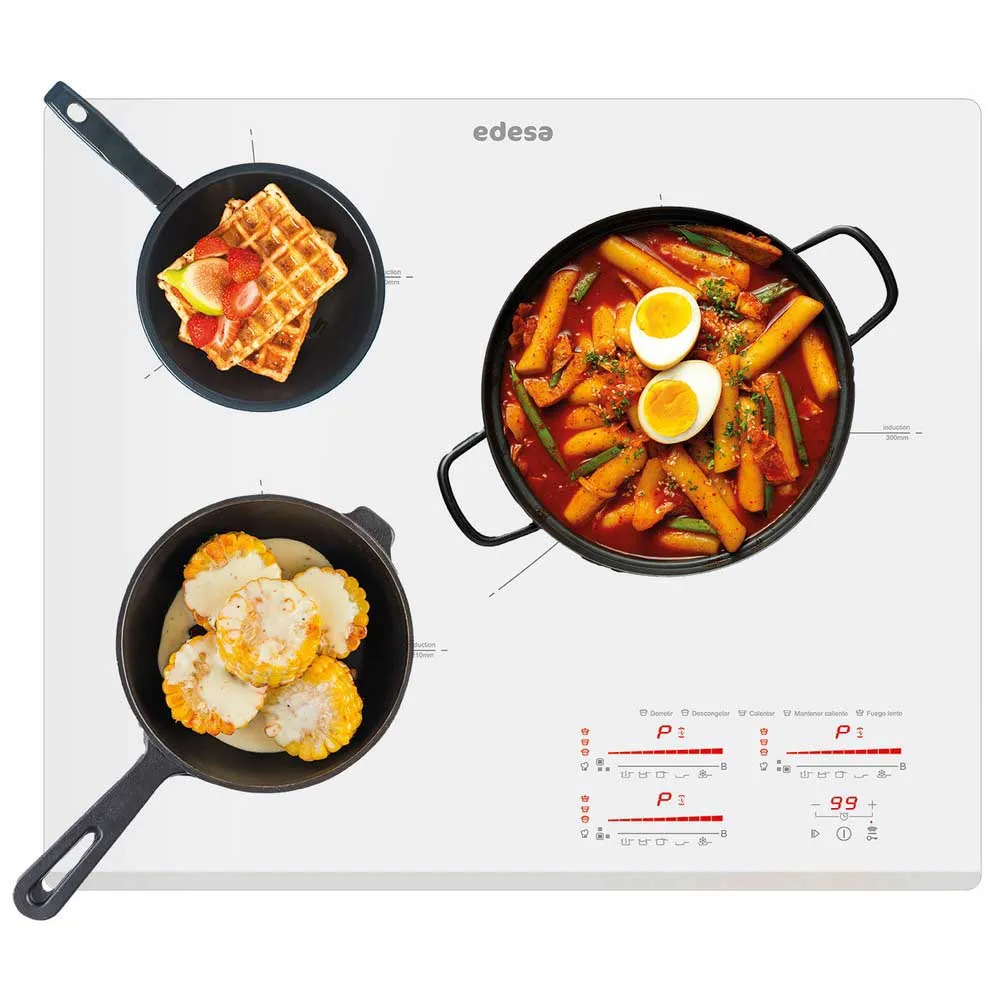 Dé Rienda Suelta a Su Creatividad Culinaria con Zonas de Cocción Versátiles. La EDESA EIMS-6330 B WH cuenta con amplias zonas de cocción, lo que le permite preparar varios platos simultáneamente con facilidad.