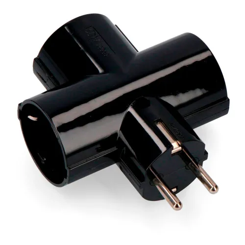 Adaptador Triple Blíster Negro Con Cerámica T/tl 16a 250v Edm.