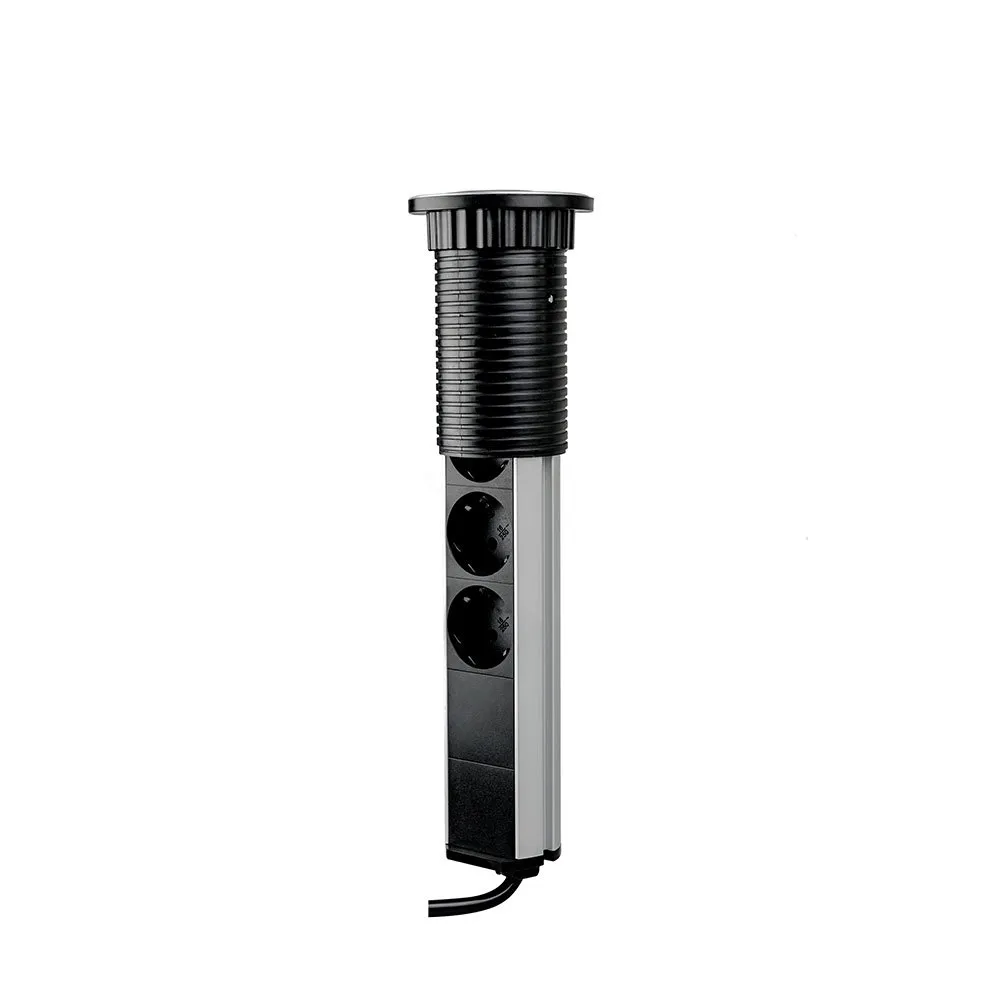 El conector multi-enchufe o torre de enchufes elevable está diseñado para añadir funcionalidad con su completa integración en muebles de cocina, oficina y hogar.